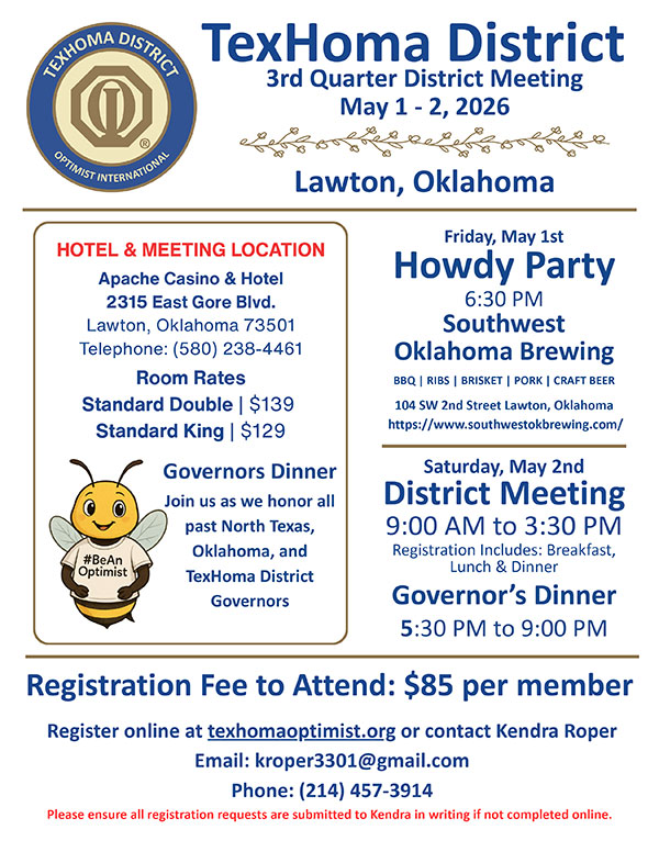 Welcome to TexHoma Optimist District and our new website. Thank you for visiting!
